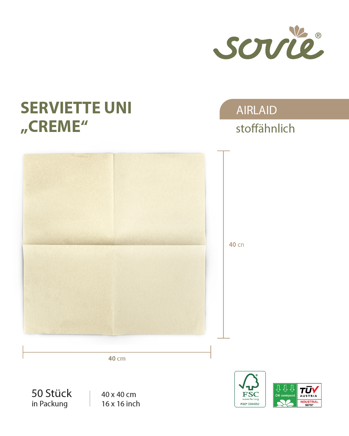 Serviette in Creme aus Softpoint 40 x 40 cm, 2-lagig, 50 Stück