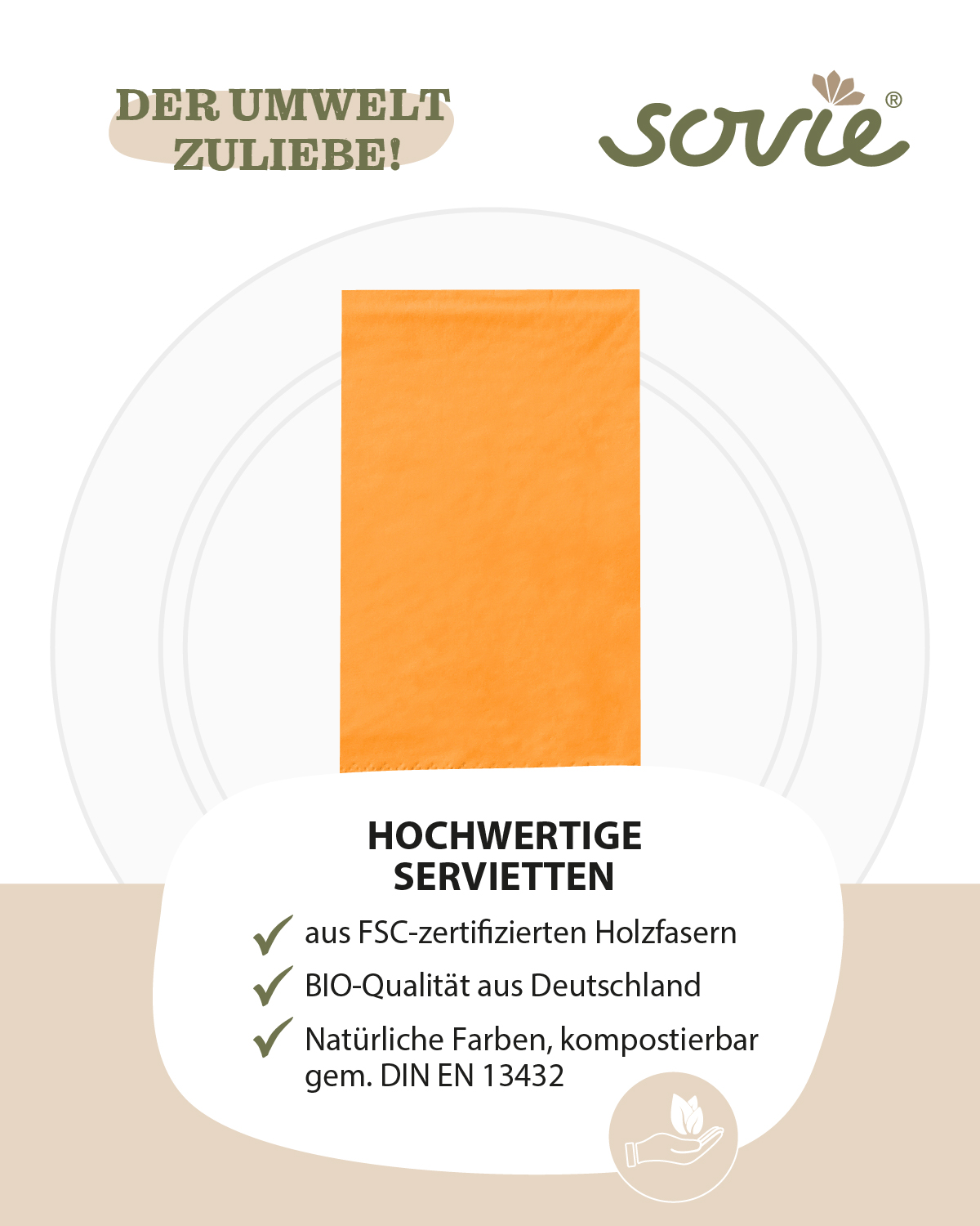 Hergestellt aus hochwertigem Tissue-Material sind diese Servietten angenehm weich im Griff und dennoch strapazierfähig genug, um den Anforderungen Ihrer Veranstaltung standzuhalten. Die warmen Curry-Orangetöne verleihen Ihrem Tisch eine lebhafte und ansprechende Atmosphäre, perfekt für Herbstfeste, Erntedankfeiern oder Gartenpartys.