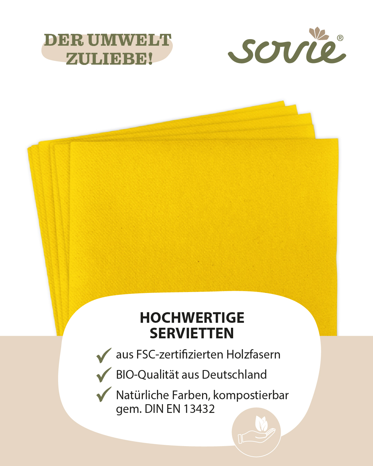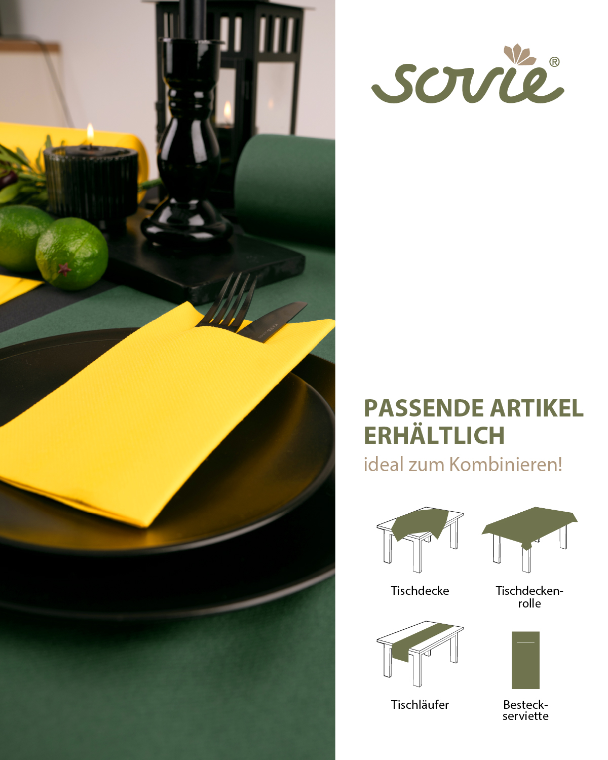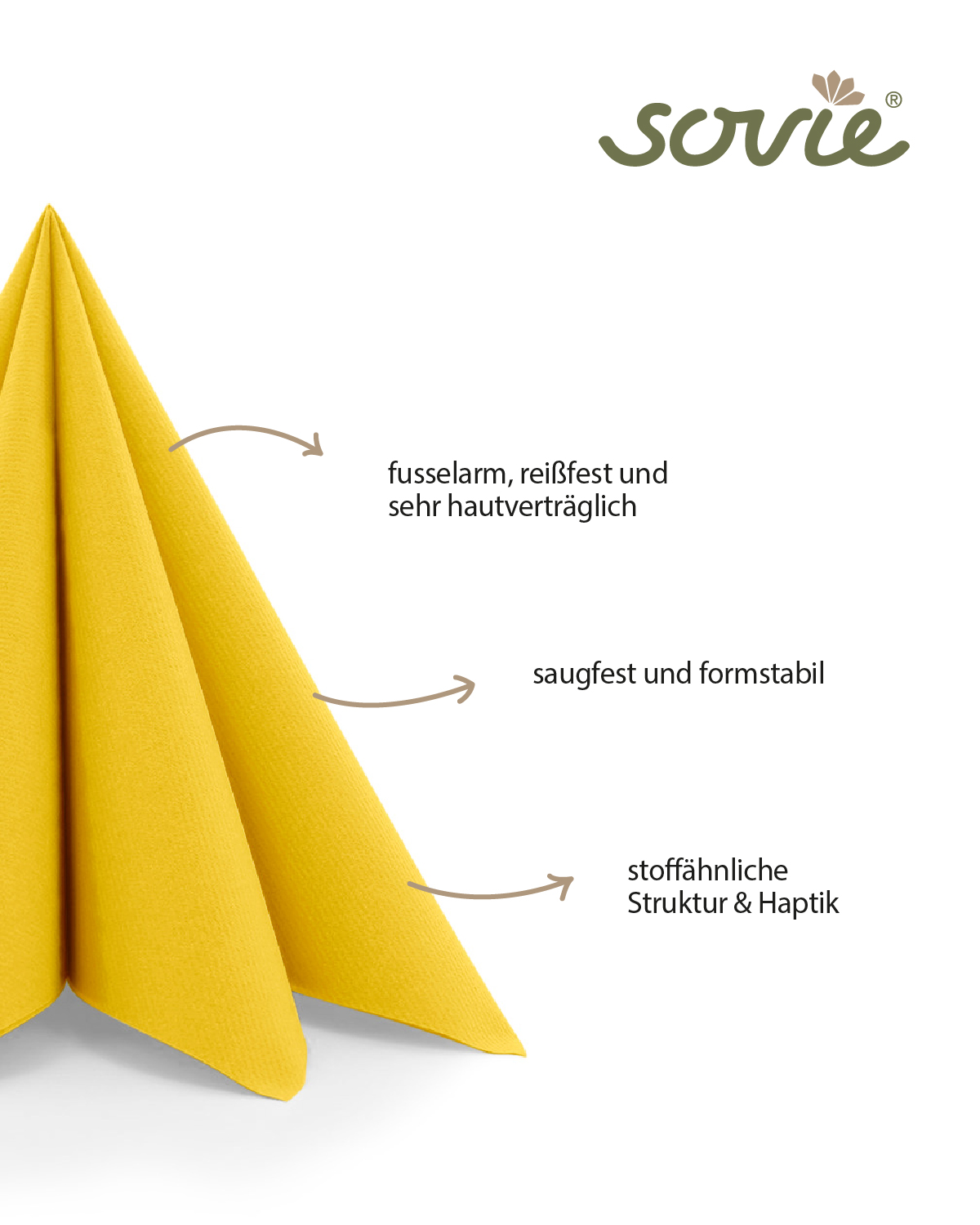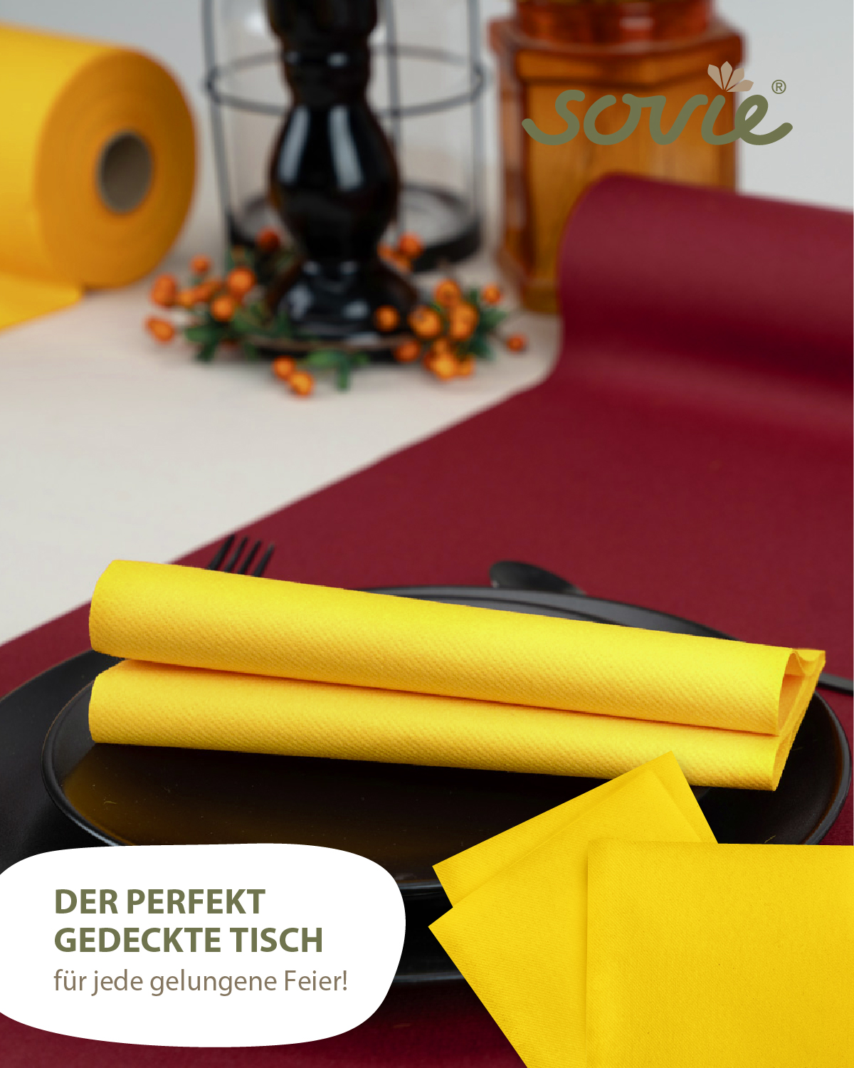 Die praktische 1/4 Falz-Form ermöglicht eine einfache Handhabung und sorgt für eine gepflegte Präsentation bei jeder Veranstaltung. Ob bei einer eleganten Hochzeit, einem stilvollen Dinner oder einem festlichen Anlass – die Serviette in GELB wird Ihre Tischdekoration bereichern und eine luxuriöse, ansprechende Atmosphäre schaffen, die Ihre Gäste beeindruckt.