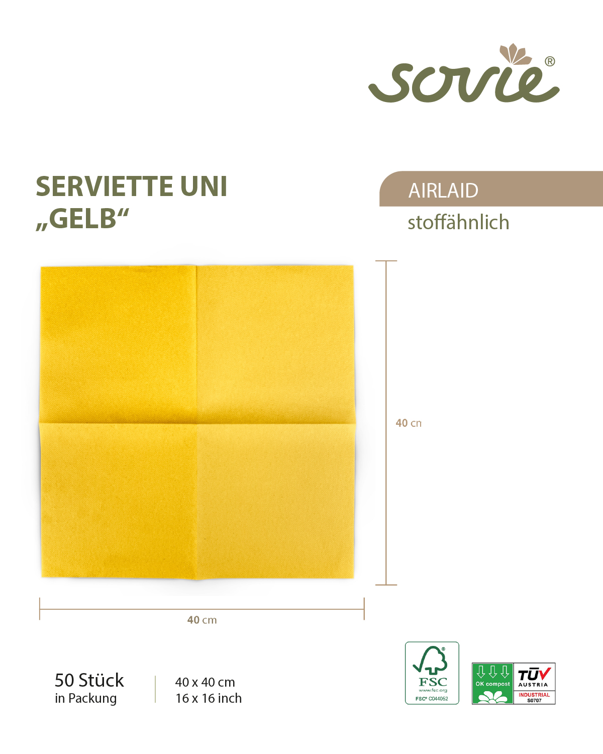 Serviette Gelb aus Linclass® Airlaid 40 x 40 cm, 12 Stück