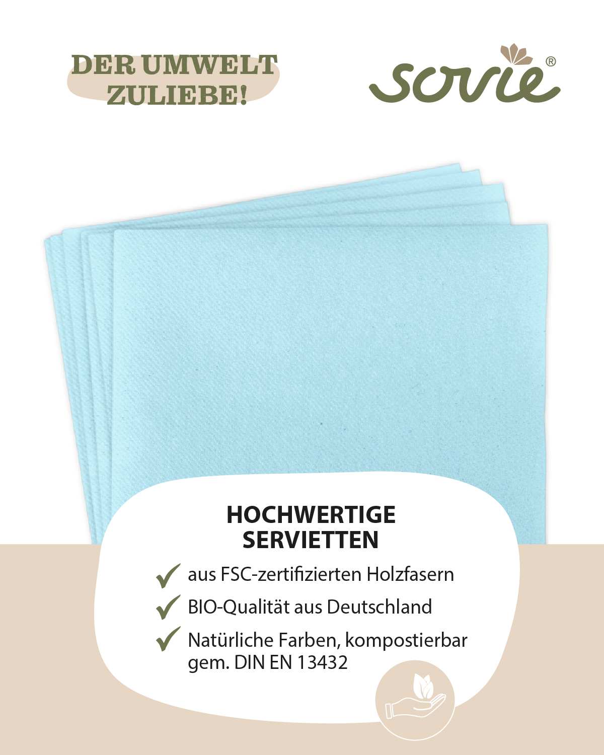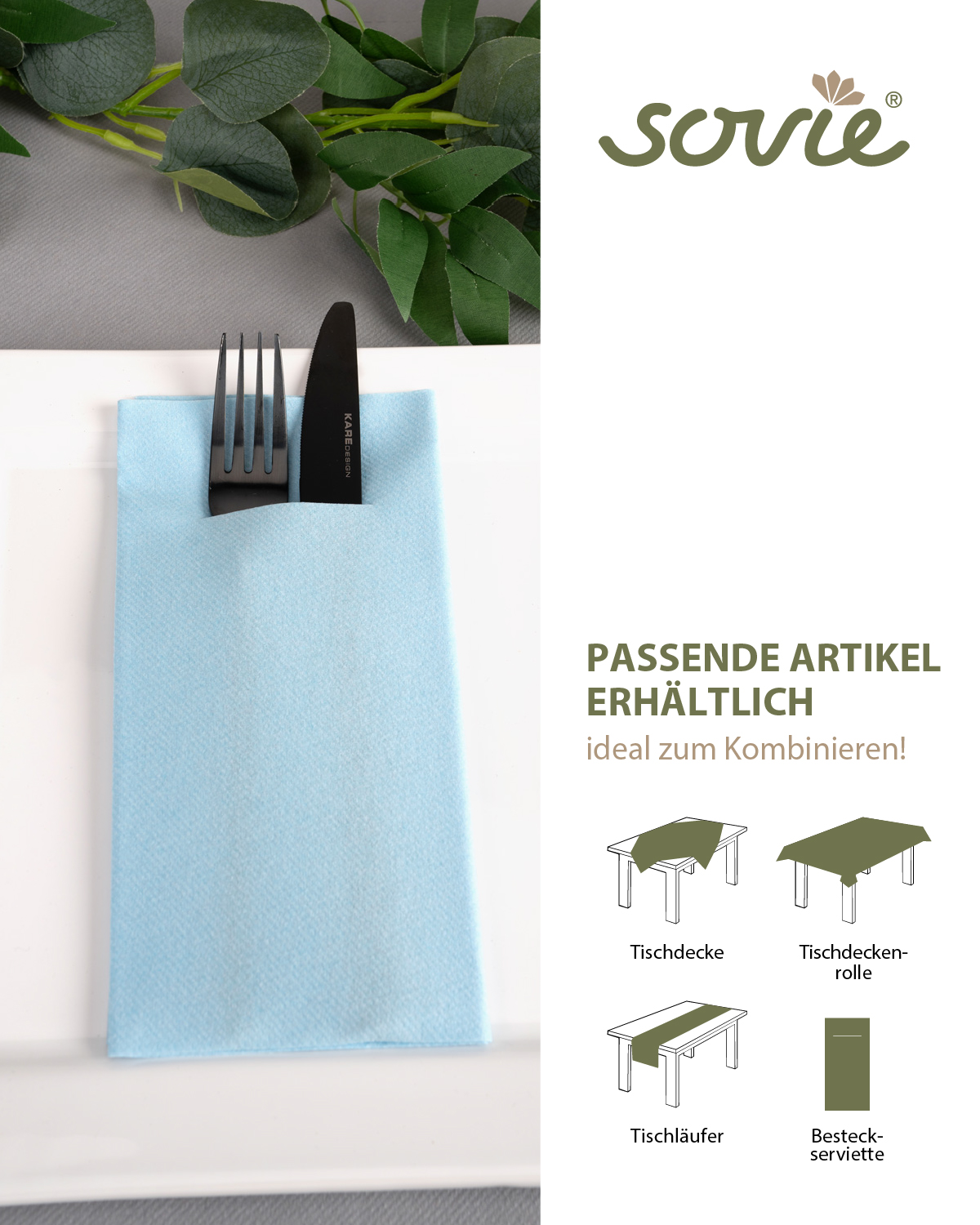 Mit der praktischen 1/4 Falz-Form lässt sich die Serviette einfach entfalten und sorgt für eine gepflegte Präsentation bei jeder Veranstaltung. Ob bei einer eleganten Hochzeit, einem luxuriösen Dinner oder einem festlichen Anlass, die Serviette in HELLBLAU wird Ihre Tischgestaltung perfekt abrunden und Ihren Gästen eine unvergessliche, stilvolle Atmosphäre bieten.