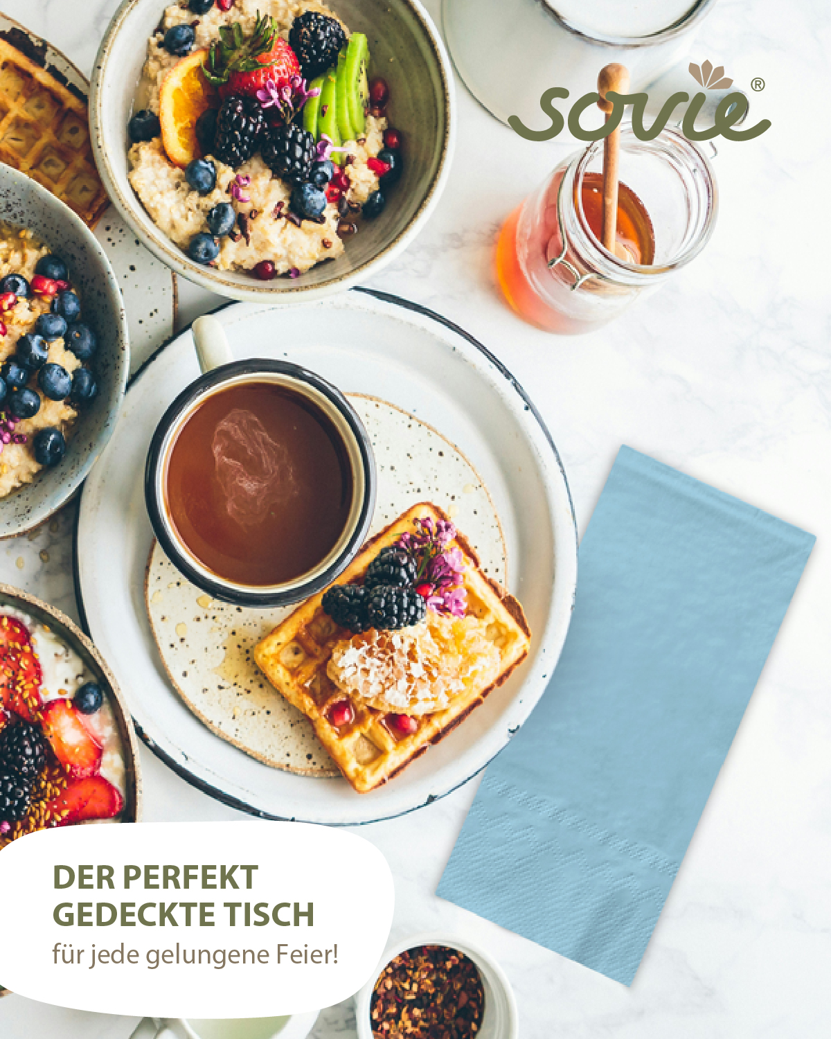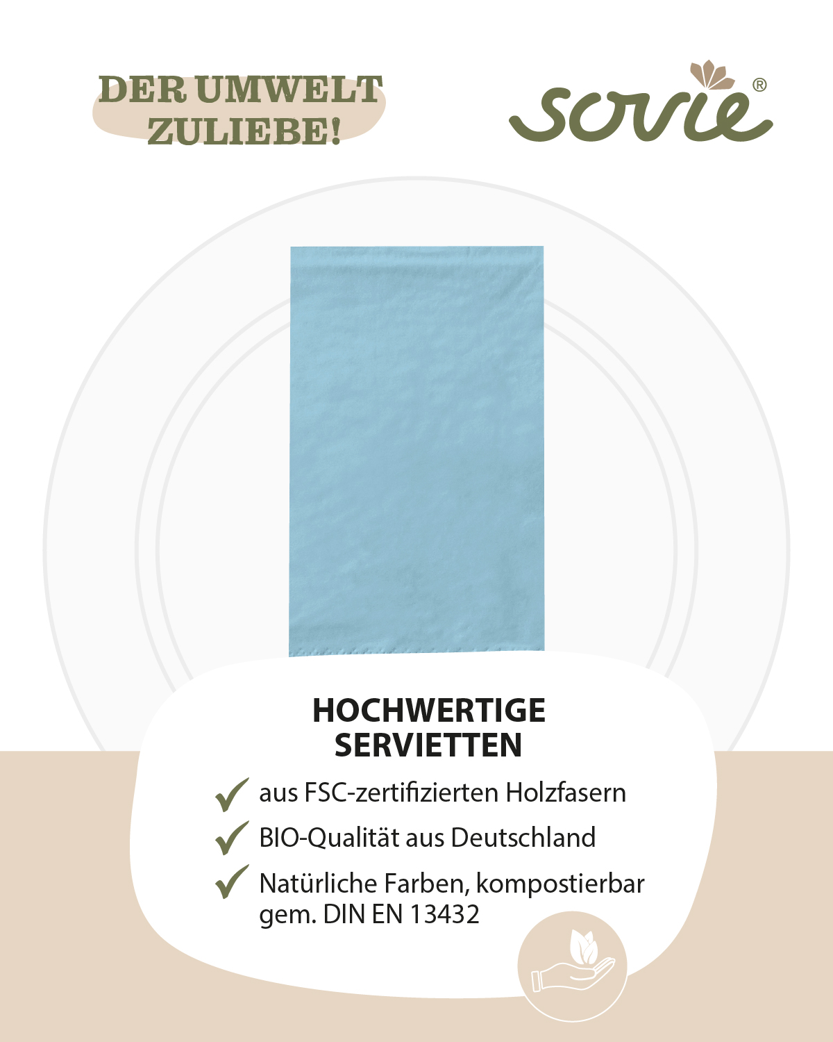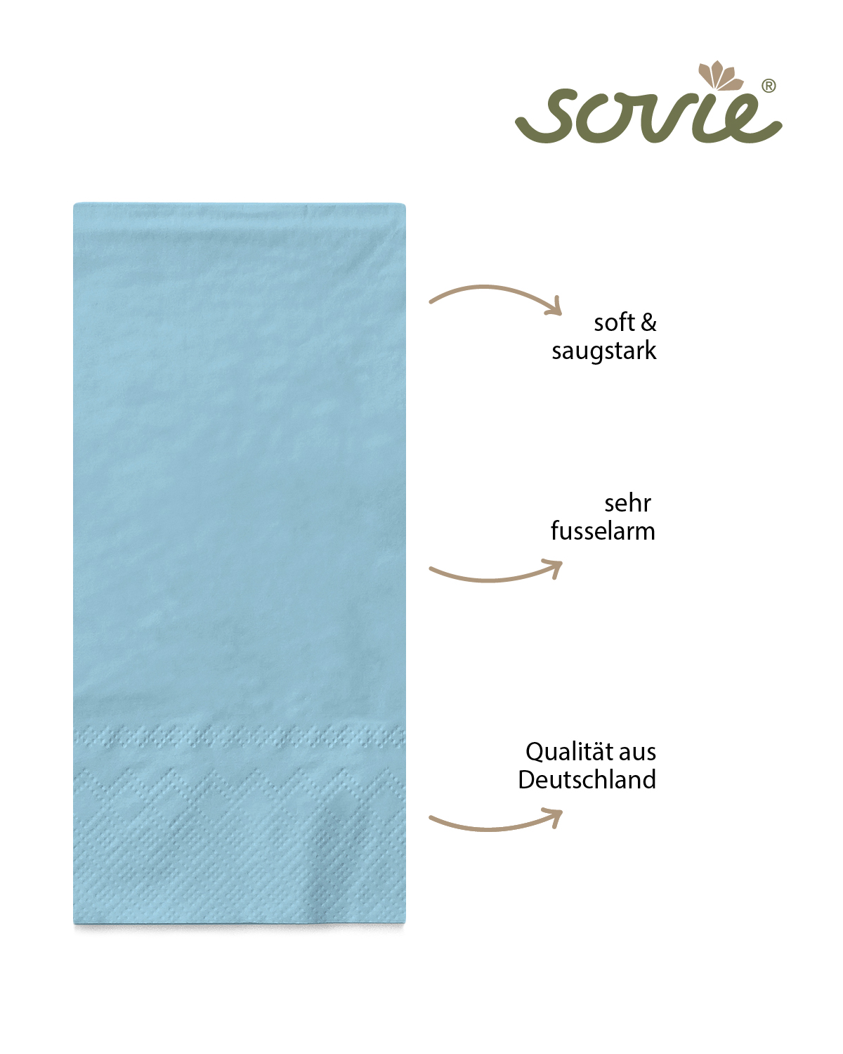 Die großzügige Größe und das sanfte Hellblau machen diese Servietten zu einer idealen Wahl für verschiedene Anlässe wie Geburtstagsfeiern, Gartenpartys oder Picknicks im Freien. Sie sind eine einfache Möglichkeit, Ihren Tisch zu verschönern und gleichzeitig für Sauberkeit und Ordnung zu sorgen.