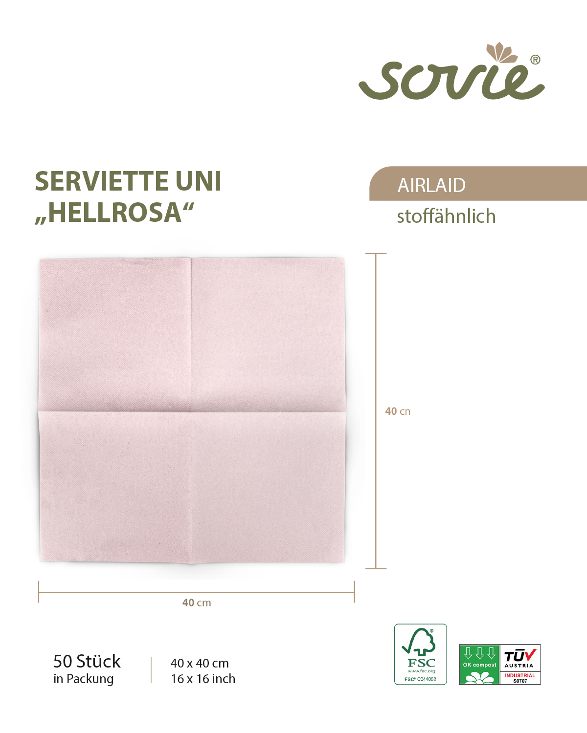 Serviette in Hellrosa aus Linclass® Airlaid 40 x 40 cm, 50 Stück