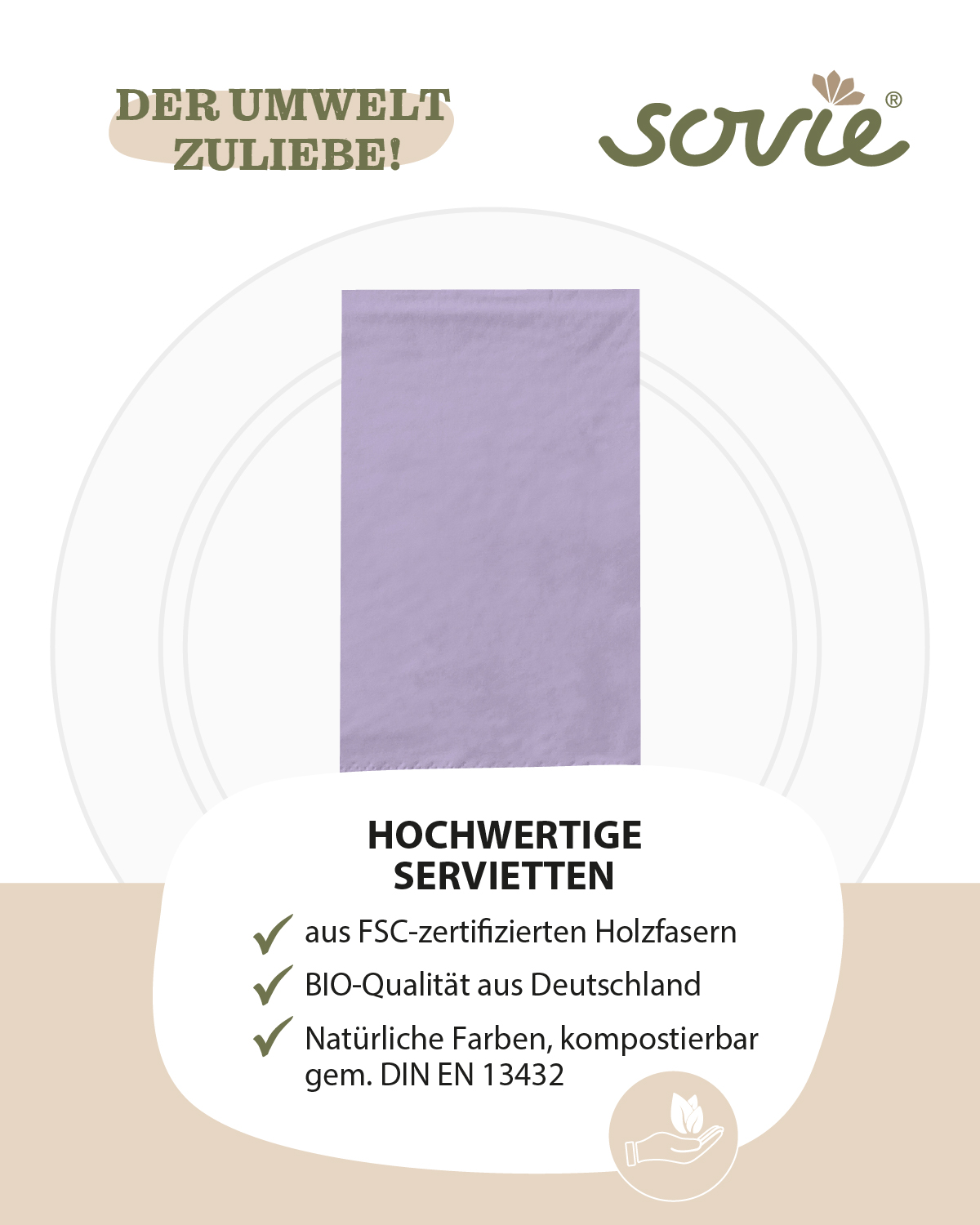 Serviette in Lila aus Tissue 3-lagig, 1/4 Falz, 33 x 33 cm, 100 Stück
