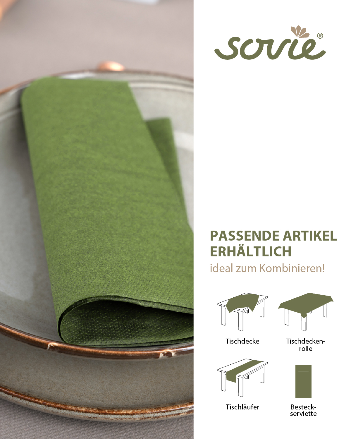 Die großzügige Größe und der elegante Olivton machen diese Servietten zu einer idealen Wahl für verschiedene Anlässe wie Picknicks, Grillpartys oder festliche Abendessen. Sie sind eine einfache Möglichkeit, Ihren Tisch zu verschönern und gleichzeitig für Sauberkeit und Ordnung zu sorgen.
