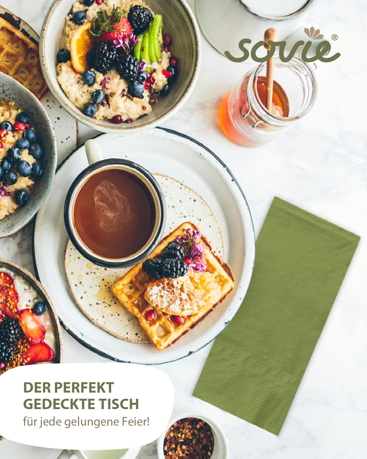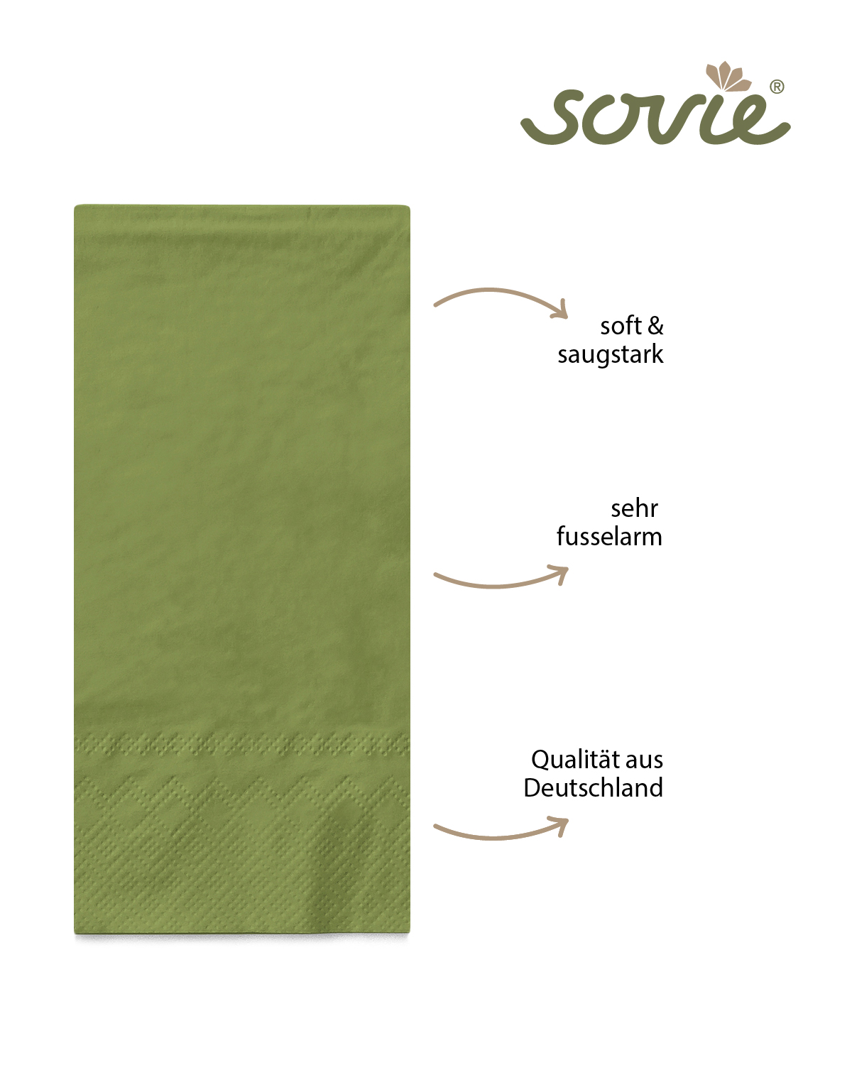 Hergestellt aus hochwertigem Tissue-Material sind diese Servietten angenehm weich im Griff und dennoch robust genug, um den Anforderungen Ihrer Veranstaltung standzuhalten. Der elegante Olivton verleiht Ihrem Tisch eine natürliche und einladende Atmosphäre, ideal für Hochzeiten, Gartenpartys oder Familientreffen im Freien.