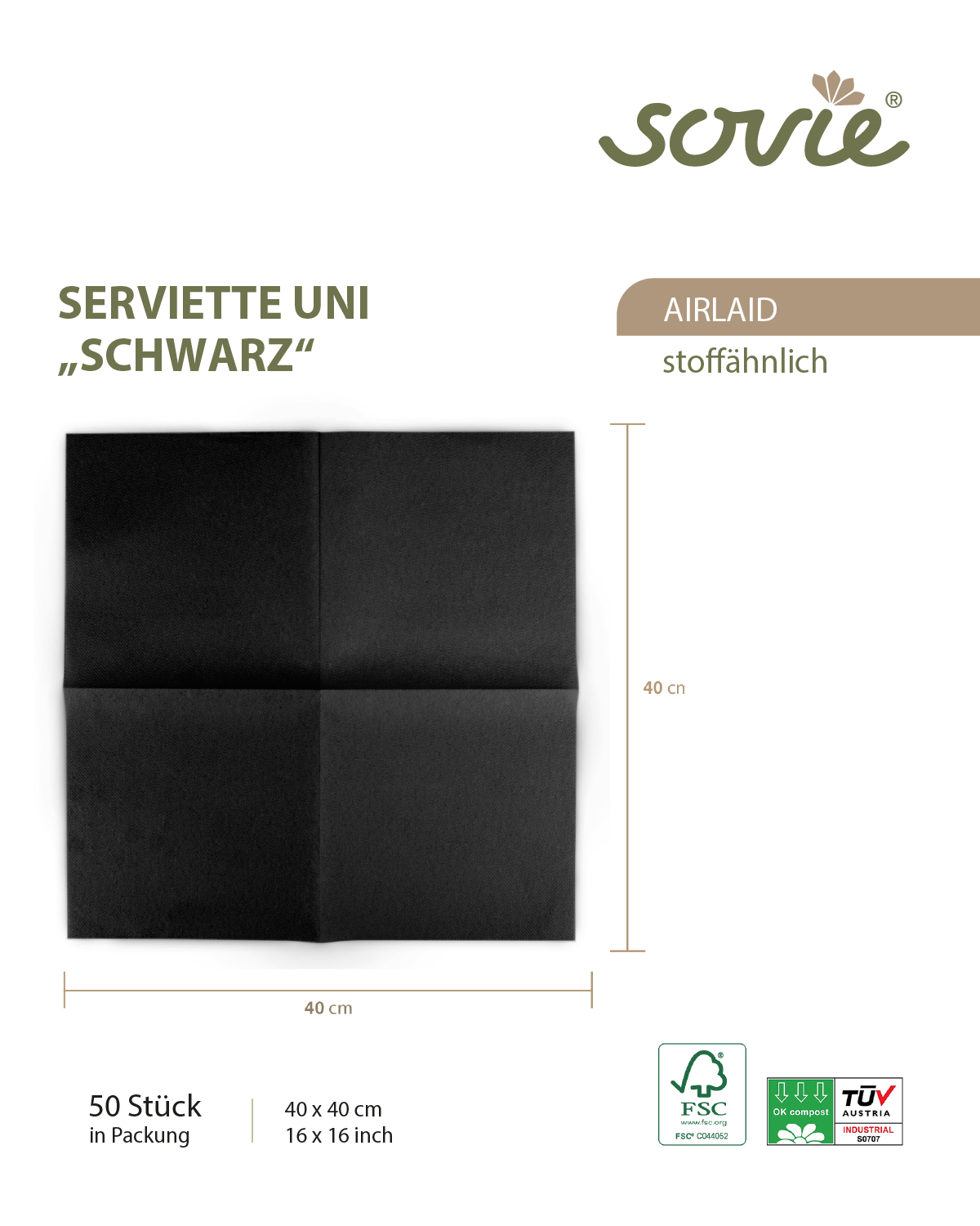 Die Serviette in SCHWARZ aus Linclass® Airlaid ist die perfekte Wahl für elegante und anspruchsvolle Tischdekorationen. Mit ihren 40 x 40 cm und einer Packung mit 50 Stück eignet sich diese Serviette ideal für festliche Anlässe wie Hochzeiten, Dinnerpartys oder elegante Events. Das klassische SCHWARZ verleiht jedem Tisch eine edle und stilvolle Note, die sowohl zu modernen als auch traditionellen Tischdekoren passt und Ihren Gästen einen bleibenden Eindruck hinterlässt.