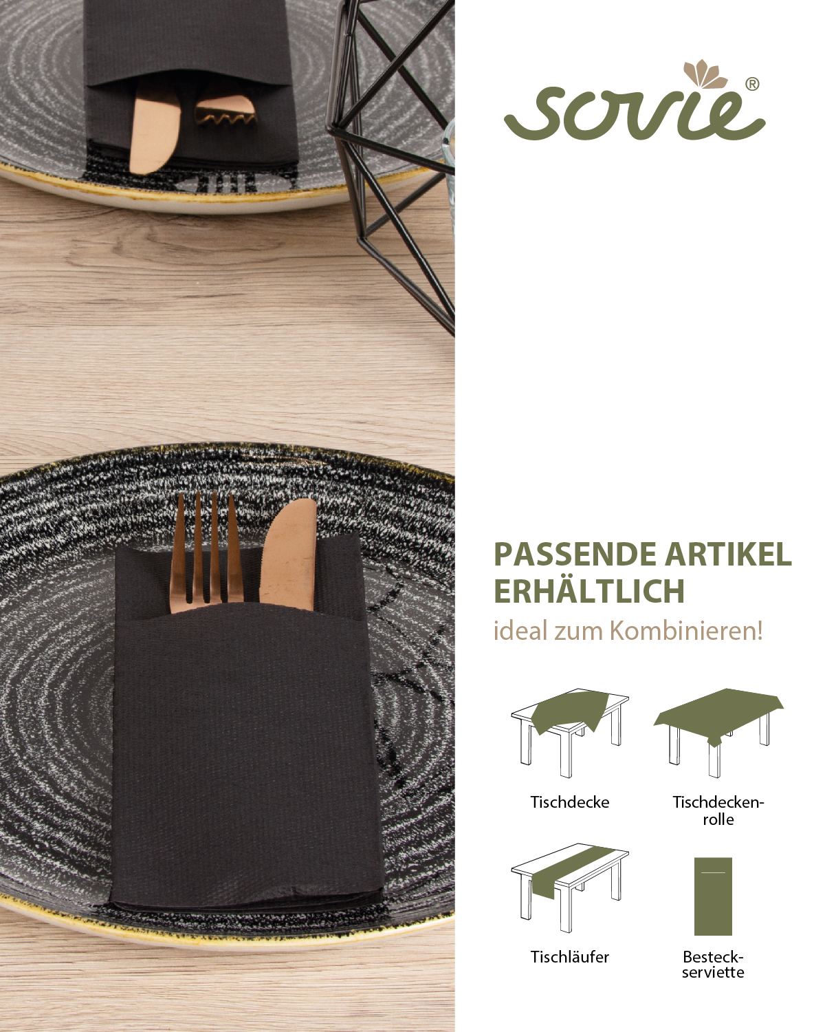 Gefertigt aus Linclass® Airlaid, einem besonders atmungsaktiven und strapazierfähigen Material, zeichnet sich diese Serviette durch ihre angenehme Haptik und hohe Saugfähigkeit aus. Das Material ist sowohl robust als auch langlebig, was es zu einer ausgezeichneten Wahl für Events macht, bei denen Qualität und Funktionalität gefragt sind. Darüber hinaus ist Airlaid umweltfreundlich, da es ohne chemische Bindemittel hergestellt wird, was es zu einer nachhaltigen Wahl für Ihre Tischdekoration macht.