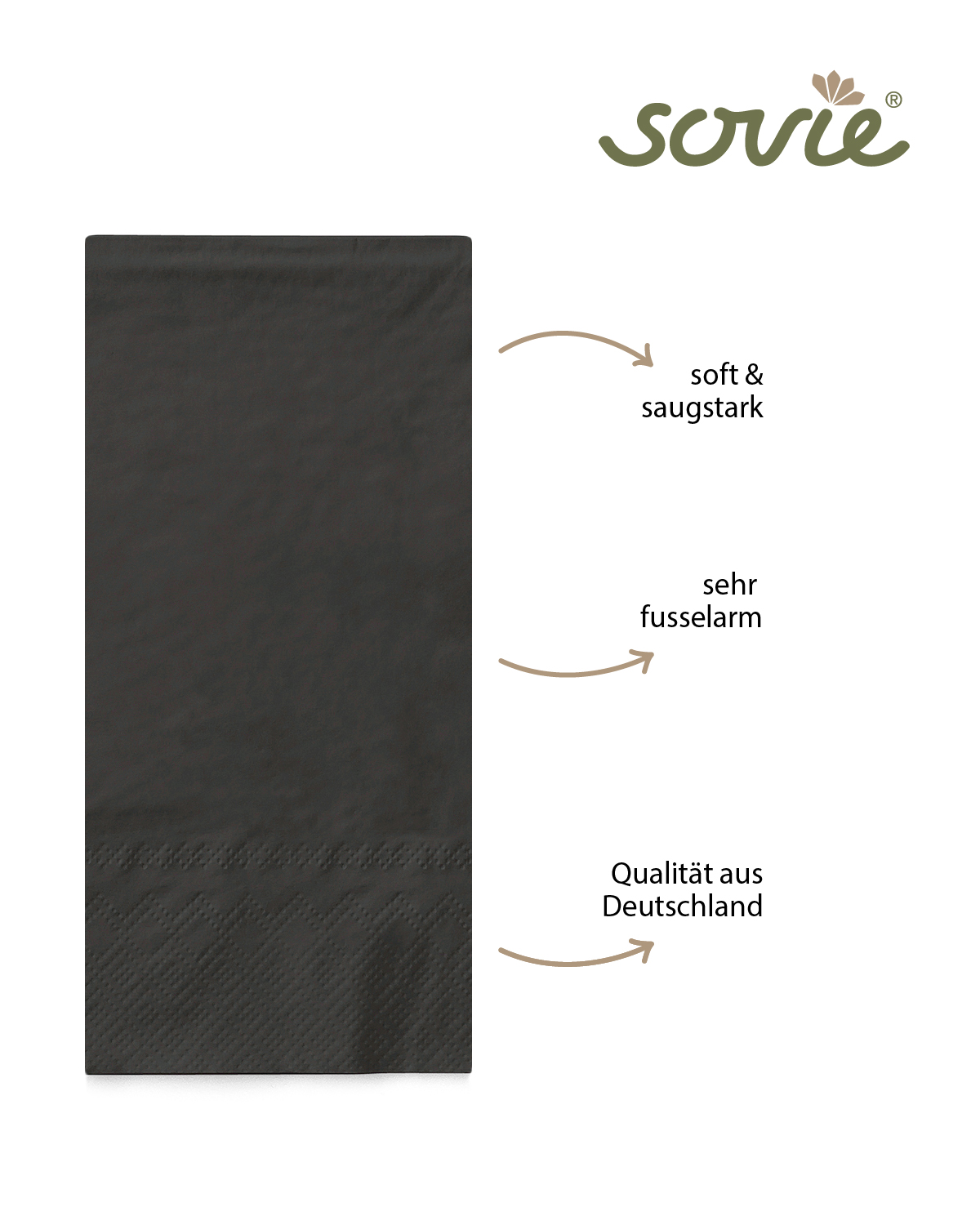 Serviette Schwarz aus Tissue Deluxe®, 4-lagig, 40 x 40 cm, 50 Stück