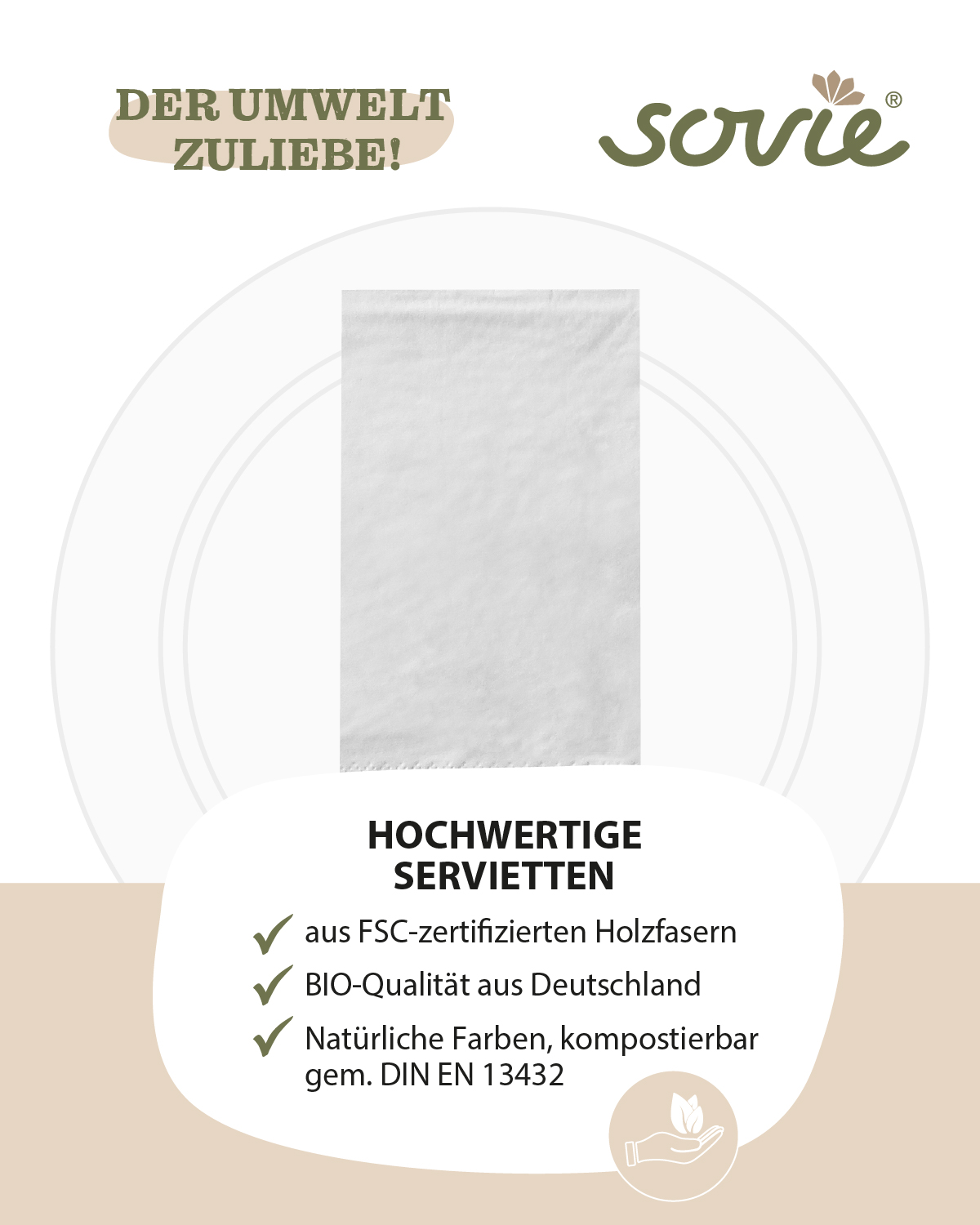 Hergestellt aus hochwertigem Tissue-Material sind diese Servietten angenehm weich im Griff und dennoch strapazierfähig genug, um den Anforderungen Ihrer Veranstaltung standzuhalten. Das strahlende Weiß verleiht Ihrem Tisch eine saubere und klassische Ästhetik, die zu jeder Dekoration passt und jedem Anlass gerecht wird.
