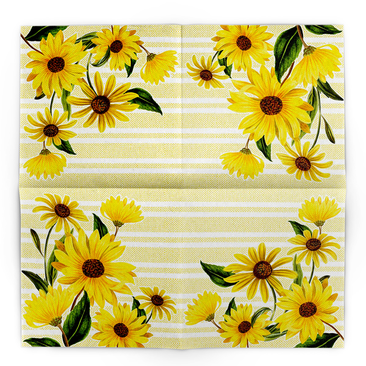 Das sonnige Design mit gelben Sonnenblumen bringt eine warme, fröhliche Atmosphäre auf jeden Tisch. Die leuchtenden Blüten setzen lebendige Akzente und eignen sich perfekt für Sommerdekorationen, Gartenpartys, Geburtstage oder festliche Anlässe. Auf dem hellen Hintergrund entfaltet das Motiv seine volle Wirkung und sorgt für eine einladende Tischgestaltung.