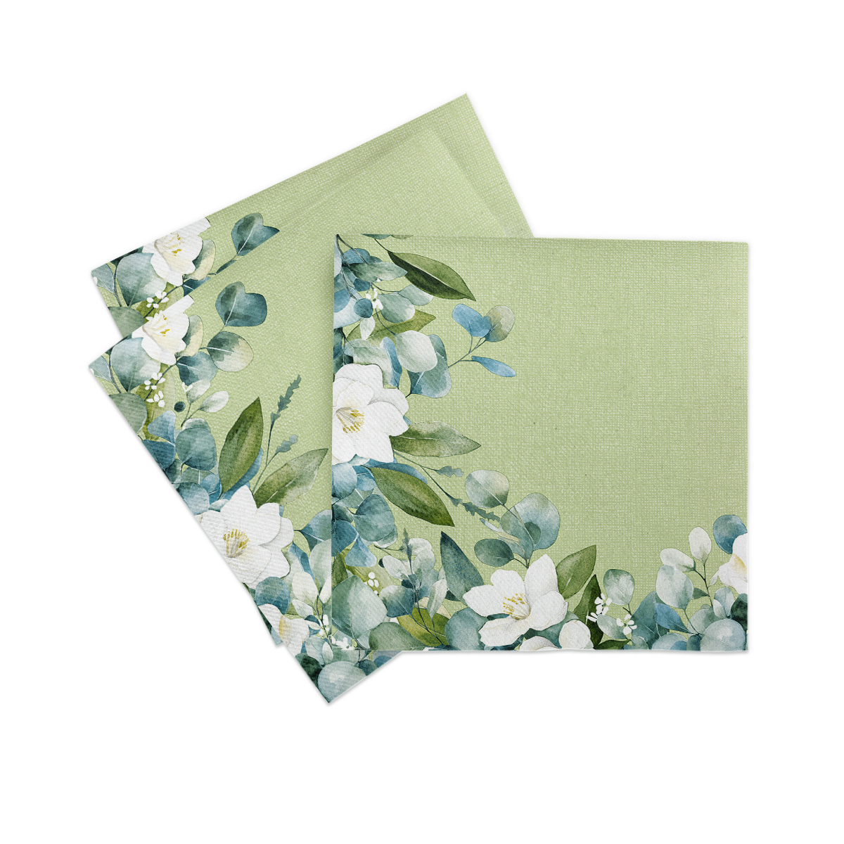 Das elegante Design mit Eukalyptus und weißen Blüten auf grünem Hintergrund verleiht jeder Tischdekoration eine natürliche, frische und zugleich moderne Atmosphäre. Die harmonische Farbgebung sorgt für eine ruhige, stilvolle Wirkung und passt perfekt zu Hochzeiten, Gartenpartys, Frühlingsfeiern oder festlichen Anlässen im natürlichen Stil. Die botanische Optik liegt im Trend und wirkt besonders hochwertig.