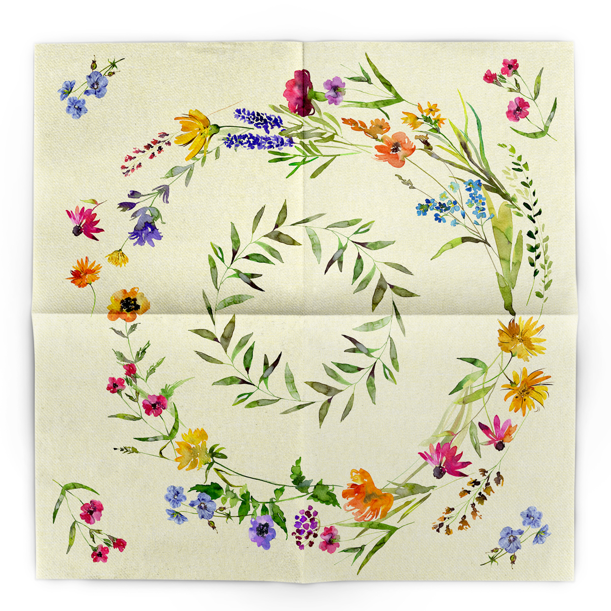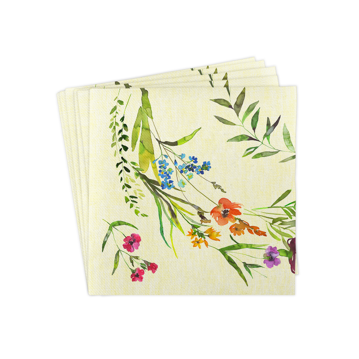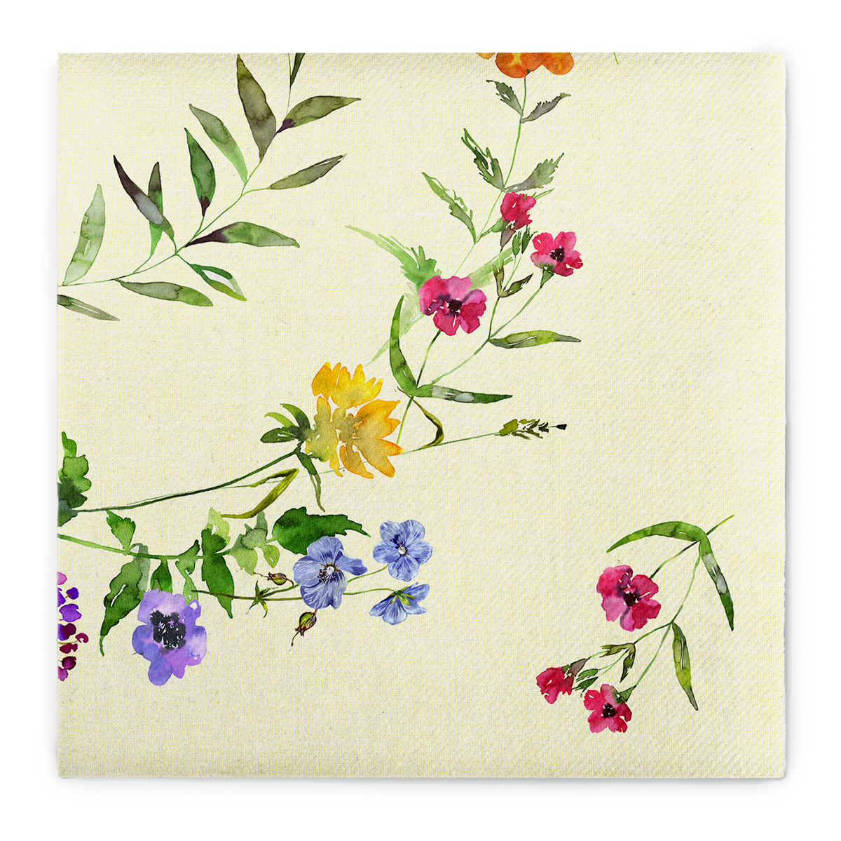 Das frühlingshafte Design mit Blüten in Violett, Lila und Gelb auf beigefarbenem Hintergrund verleiht jeder Tischdekoration eine elegante und zugleich lebendige Ausstrahlung. Die harmonische Farbkombination sorgt für eine freundliche, festliche Atmosphäre und passt perfekt zu Hochzeiten, Frühlingsfeiern, Geburtstagen oder stilvollen Gartenpartys. Das florale Motiv wirkt modern und zugleich zeitlos.
