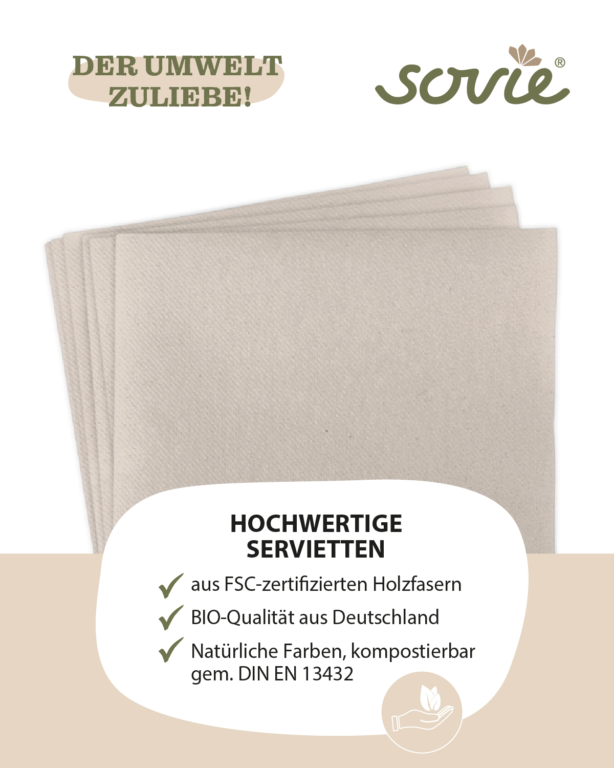 Serviette Naturbraun aus Linclass® Airlaid 40 x 40 cm, 12 Stück