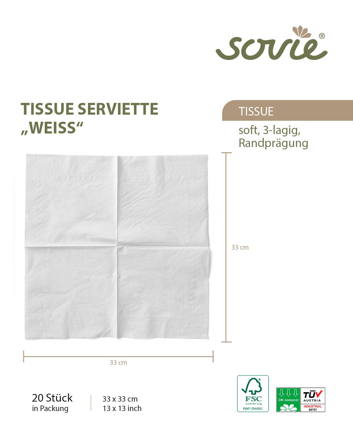 - Verpackung: 20 Servietten/Packung