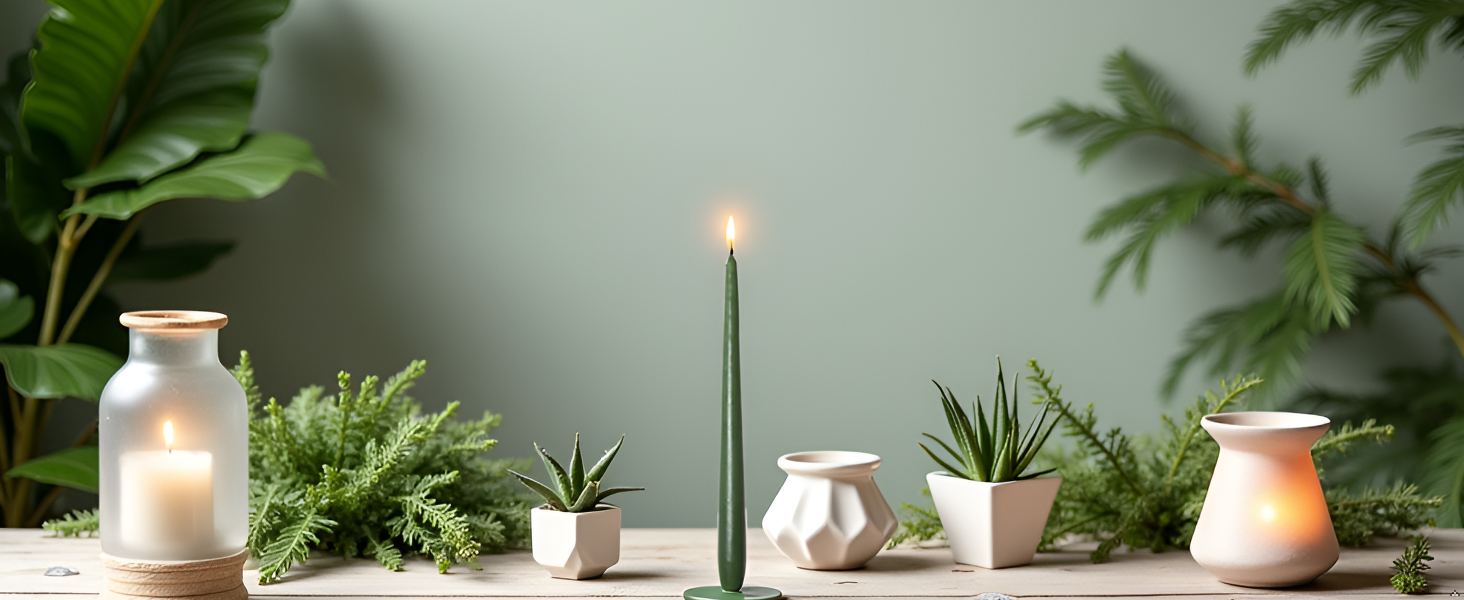 Hergestellt aus hochwertigem Wachs brennen die Kerzen gleichmäßig und nahezu tropfenfrei ab und bieten eine Brenndauer von ca. 10 Stunden. Das weiße Innenwachs sorgt für einen sauberen Abbrand, während die farbige Außenseite ein elegantes und dekoratives Erscheinungsbild erzeugt. Die Kombination aus klassischem Design und Dunkelgrün schafft eine harmonische und luxuriöse Atmosphäre.