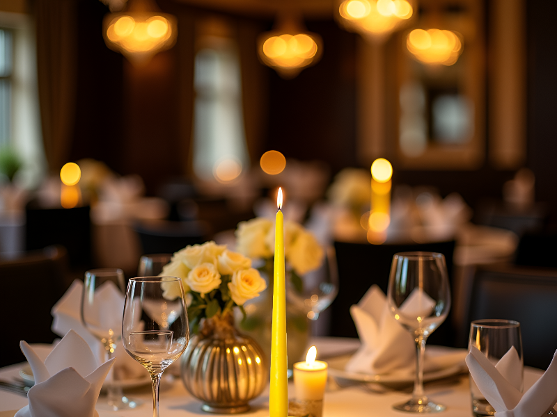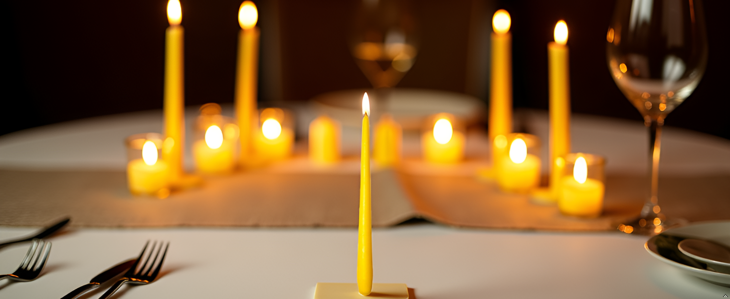 Die Spitzkerzen Premium in Senfgelb bringen warme Farbakzente auf jede festliche Tafel. Mit einer Länge von 28 cm und einem Durchmesser von 2,2 cm passen sie ideal in handelsübliche Kerzenhalter. Sie sind perfekt geeignet für stilvolle Hochzeiten, Dinner-Events, Jubiläen oder besondere Anlässe in Gastronomie und Hotellerie.