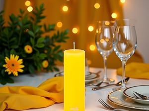 Diese vielseitige Stumpenkerze in Senfgelb harmoniert hervorragend mit Naturtönen, Grau- und Erdfarben sowie mit goldenen oder schwarzen Dekoelementen. Ob als leuchtendes Highlight in einer modernen Einrichtung, als Teil einer herbstlichen Tischdekoration oder als dezenter Farbakzent im Alltag – sie sorgt für eine stilvolle und einladende Atmosphäre.