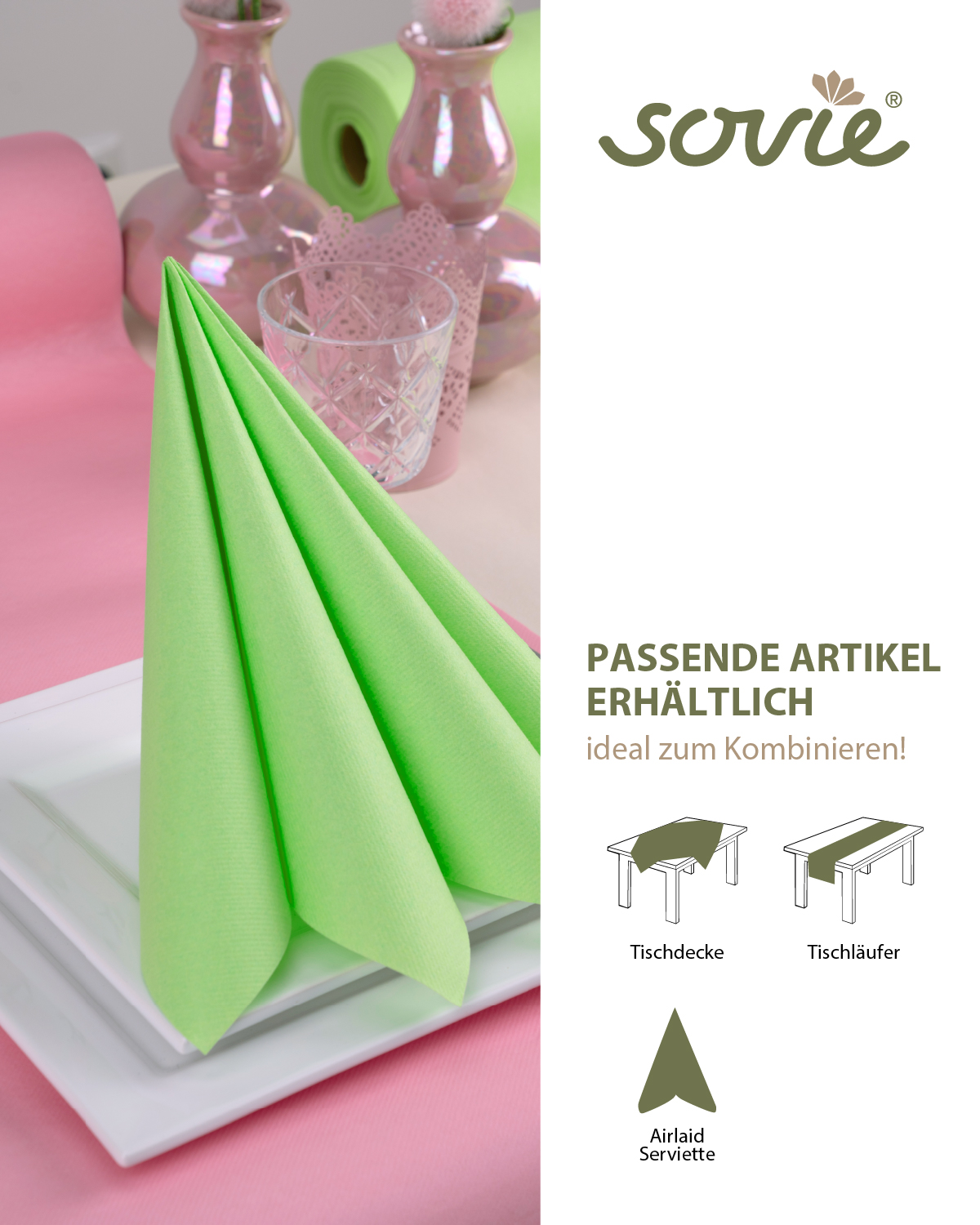 Tischläufer Apfelgrün aus Linclass® Airlaid 40 cm x 4,80 m, 1 Stück