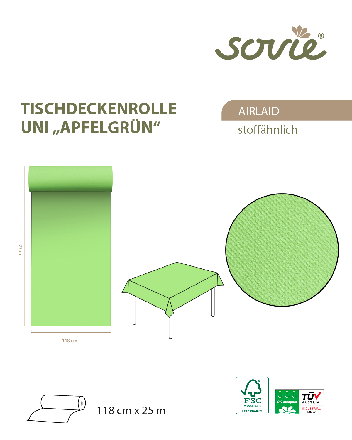 Tischdeckenrolle in Apfelgrün aus Linclass® Airlaid, 118 cm x 40 m, 1 Stück