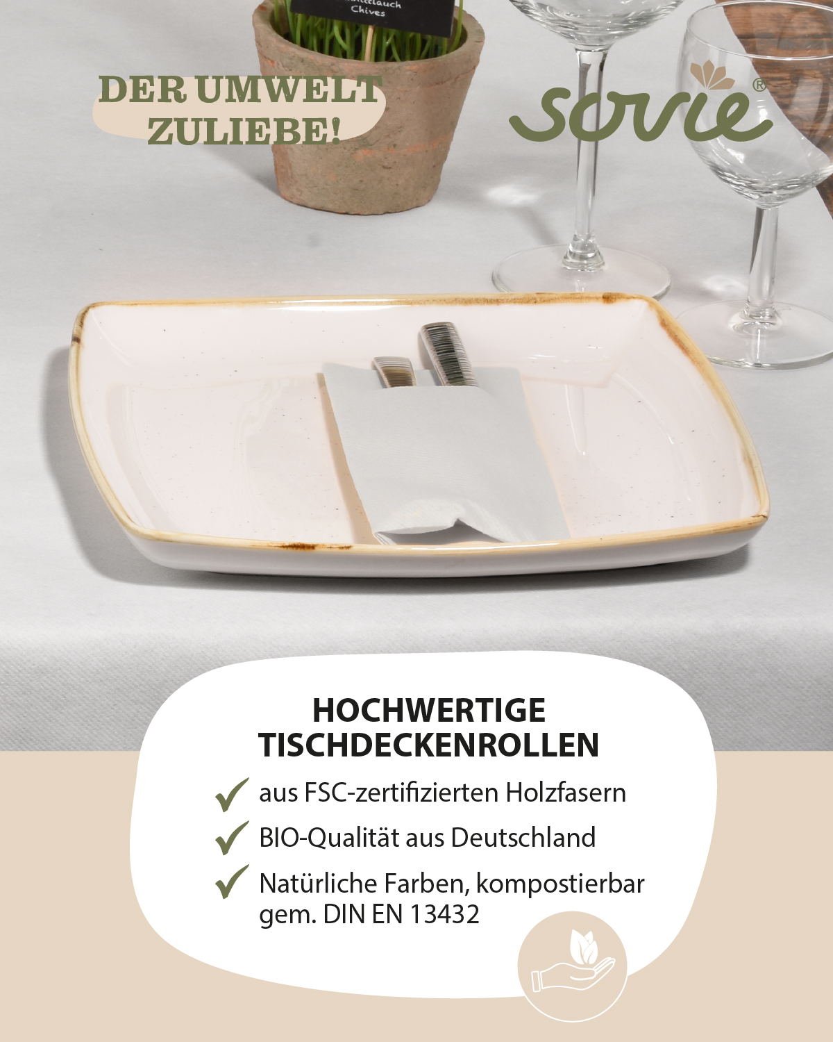 Hergestellt mit der hochwertigen Linclass®-Airlaid-Technologie, bietet diese Tischdeckenrolle nicht nur eine ansprechende Optik, sondern auch eine herausragende Funktionalität. Das Material ist besonders weich und stoffähnlich, dabei aber auch extrem strapazierfähig, saugfähig und reißfest. Diese Eigenschaften machen die Tischdecke zur perfekten Wahl für längere Veranstaltungen, bei denen sowohl Zuverlässigkeit als auch eine makellose Präsentation gefragt sind. Die Rollenform ermöglicht es Ihnen, die Tischdecke individuell auf die gewünschte Länge zuzuschneiden, sodass sie ideal auf Ihre Tische passt und für einen nahtlosen, eleganten Look sorgt.