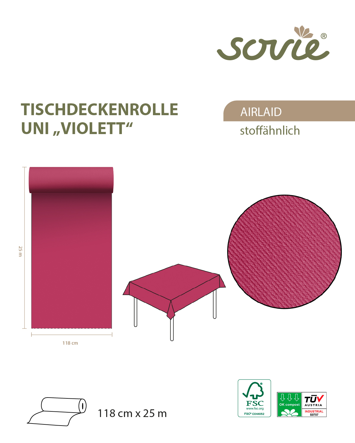 Tischdeckenrolle Lila aus Linclass® Airlaid 118 cm x 25 m, 1 Stück