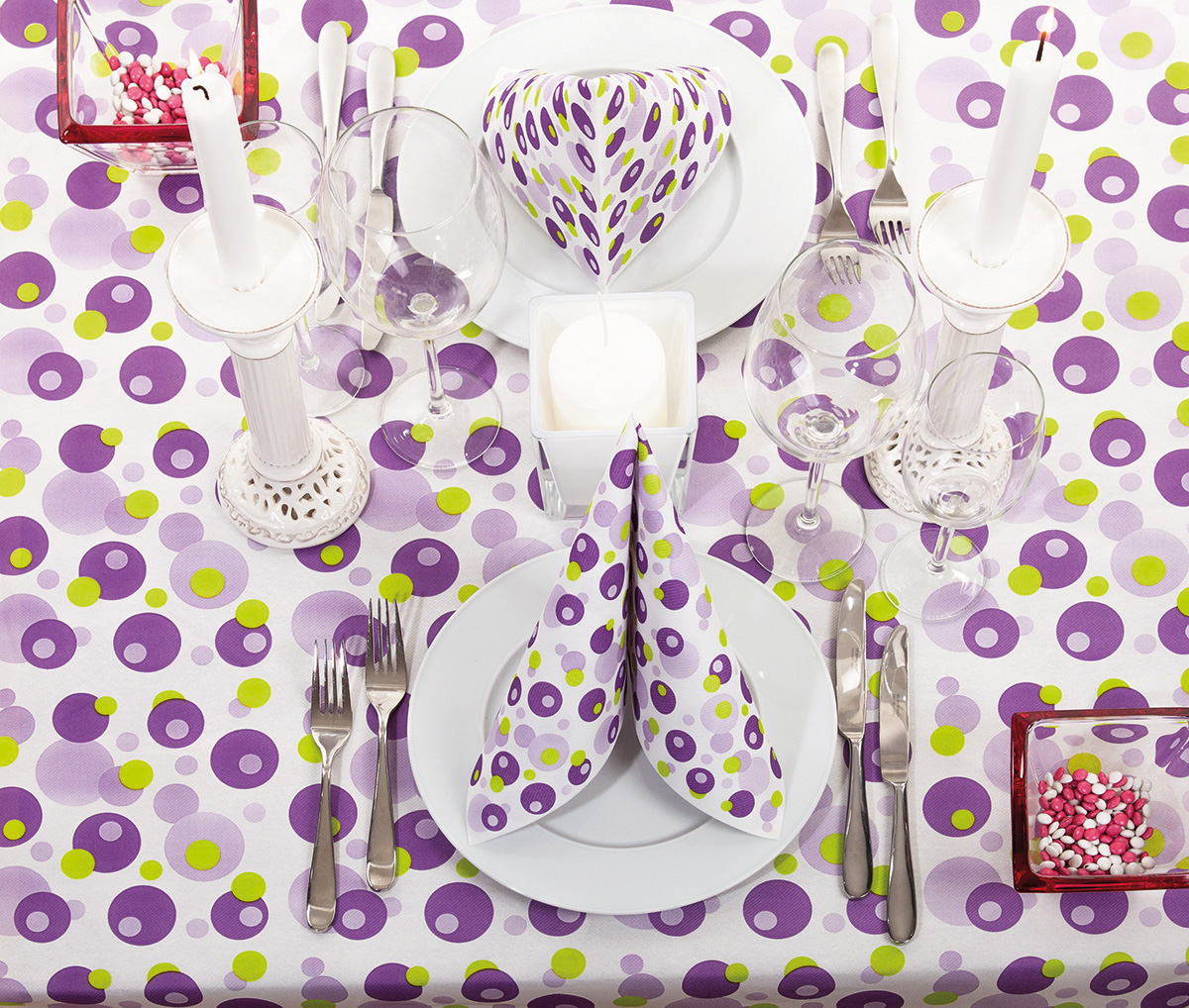 Das moderne Design in Violett und Grün harmoniert hervorragend mit sommerlichen, farbenfrohen oder modernen Dekorationsthemen. Ob für ein lockeres Fest oder ein stilvolles Event – der Tischläufer BUBBLES setzt Akzente, die Ihre Gäste begeistern werden. Verleihen Sie Ihrer Tischdekoration einen Hauch von Lebendigkeit und Eleganz mit diesem einzigartigen Linclass® Airlaid-Tischläufer. Perfekt für besondere Anlässe und fröhliche Feiern!