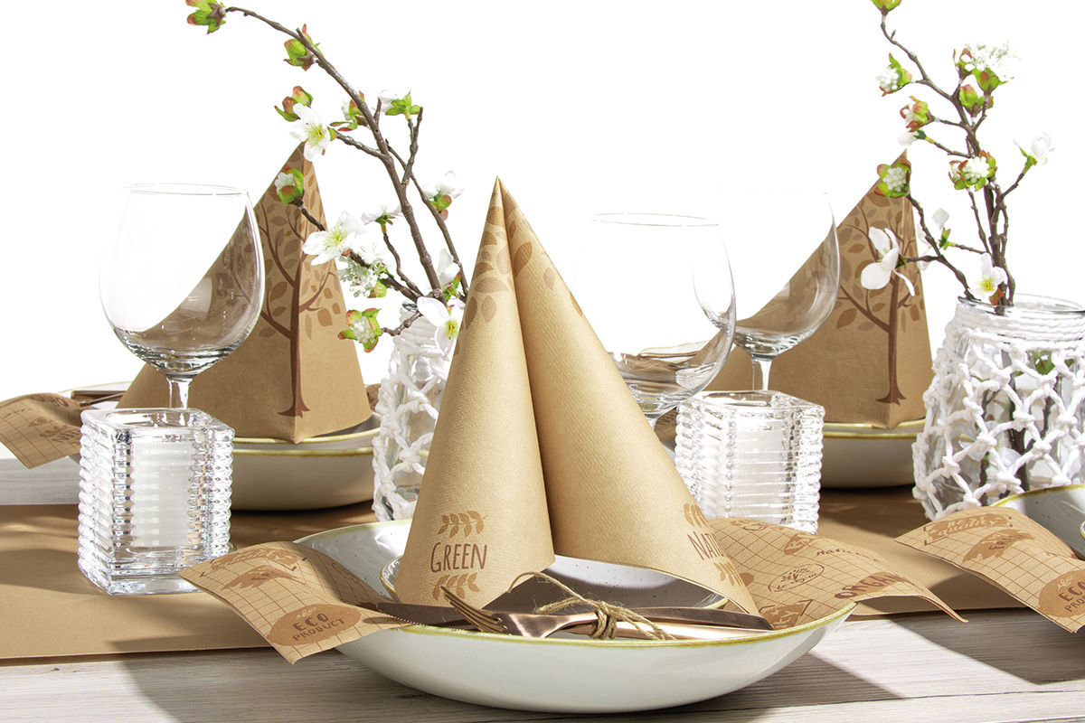 Mit dem Motiv GREEN NATURE transportieren Sie Ihr nachhaltiges und ökologisches Konzept authentisch zu Ihren Kunden. Das dezente Design GREEN NATURE in BRAUN mit einem Allover Print und ökologischen Schlagworten wie (Eco, Organic, Bio, Green, Natural, Nature, 100% Fresh) ist in den natürlichen Farbvarianten Oliv und Braun erhältlich.