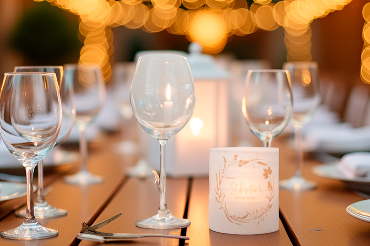 Begrüßen Sie Ihre Gäste mit Wärme und Gastfreundschaft dank unserer Windlicht Banderole mit dem Slogan "SCHÖN DASS DU DA BIST". Bestellen Sie sie noch heute und verleihen Sie Ihren Zusammenkünften eine herzliche und einladende Atmosphäre, die in Erinnerung bleibt.