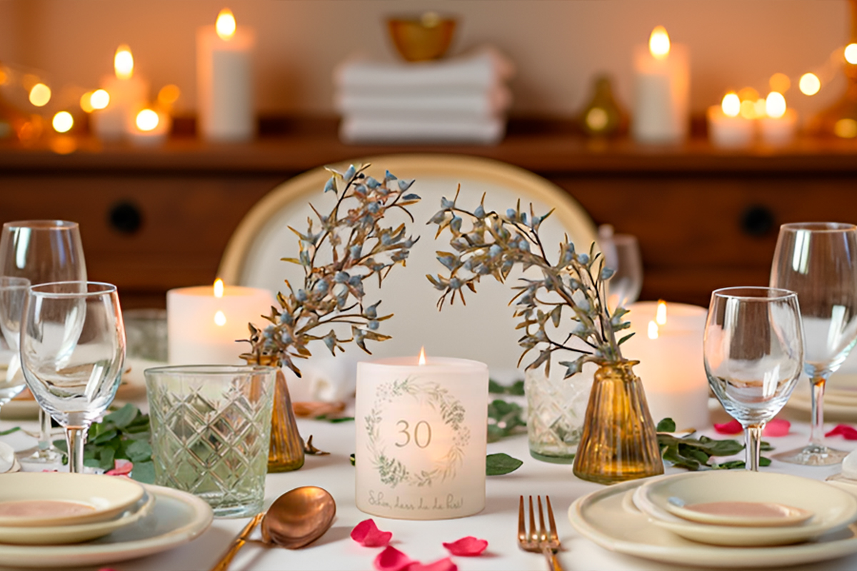 Hergestellt aus transparentem Papier, sorgt die Banderole für eine sanfte Lichtstreuung und schafft eine warme und einladende Atmosphäre, wenn die Kerze angezündet wird. Die goldene "30" fügt einen Hauch von Eleganz hinzu und unterstreicht den besonderen Anlass des 30. Geburtstags.