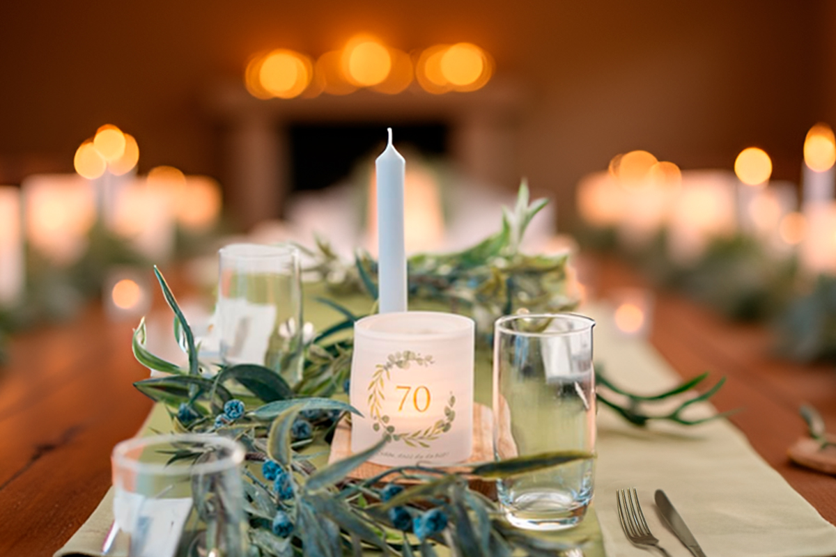 Hergestellt aus transparentem Papier, sorgt die Banderole für eine sanfte Lichtstreuung und schafft eine warme und einladende Atmosphäre, wenn die Kerze angezündet wird. Die goldene "70" fügt einen Hauch von Eleganz hinzu und unterstreicht den besonderen Anlass des 70. Geburtstags.